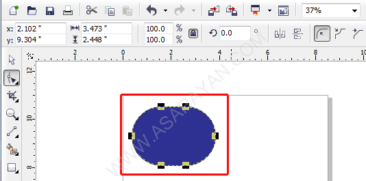 2. بسیار خوب ابزار Shape Tool را انتخاب کنید و روی مستطیل کشیده شده کلیک نمایید .(اگر شکل دیگری هم ترسیم کرده اید همین کار را انجام دهید ) همانطور که در تصویر زیر مشاهده می کنید بعد از کلیک کردن بر روی مستطیل کشیده شده کادر به حالت انتخاب در آمده و نقاط ترسیمی کادر به صورت پر رنگ در چهار طرف به صورت مشکی رنگ نمایش داده می شود .