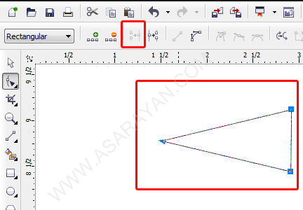 یکی دیگر از ابزارهای مهم در قسمت Shape Tool ابزارهای Join two nodes , Break curve می باشد یکی برای وصل کردن دو نقطه و دیگری برای جدا کردن دو خط از هم . من دو خط با استفاده از ابزار Point Line میکشم.