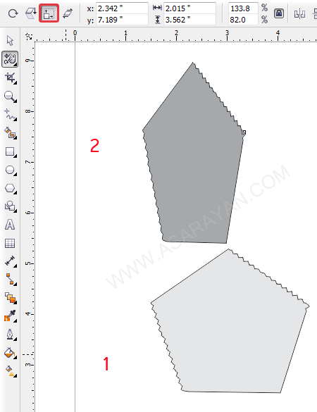 2. دومین ابزارزیر مجموعه Shape Tool ابزار Smudge می باشد . این ابزار را انتخاب کنید
