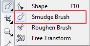 Smudge Brush هست . روش کار این ابزار به این صورت هست که فرض کنید یک کادر مربع شکل کشیده اید حال با ابزار Smudge Brush اگر به طرف داخل کادر کلیک کنید ناحیه انتخاب شده محو می شود و اگر به طرف بیروی کادر کلیک کنید قسمت مورد نظر به بیرون کادر کشیده می شود .برای لکه گذاری بیشتر بکار می رود.