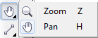 ابزار Zoom و Pan : این ابزار هم برای کوچکتریا بزرگتر کردن ناحیه مورد نظر بکار می رود . با ابزار Pan می توانید کادر وسط صفحه را کمی جابجا کنید.