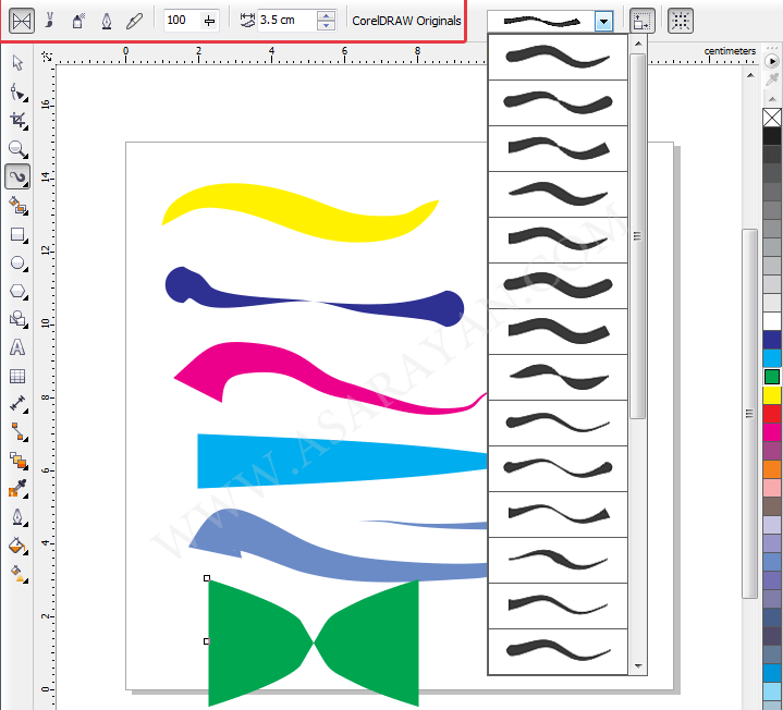 در قسمت Brows . Save Artistic Media Strok می توانید یک قلم را به لیست قلم ها اضافی کنید یا یک قلم را خودتان ایجاد کرده و با فرمت cmx ذخیره کنید .(این قسمت به طور کامل در آموزشهایی که در آینده در بخش کرل قرار می گیرد شرح داده می شود )