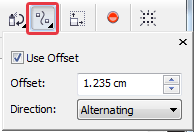 آیکون Offset هم برای چیدمان و تراز قرار گیری قلم ها در یک کادر بکار می رود شما با زیاد کردن اعداد کادر offset مشاهده می کنید که بعضی از اشکال داخل یک خط قلم ، بالا و پایین تر از خط اصلی قرار می گیرند