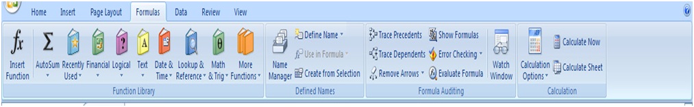 از این زبانه برای درج فرمول ها و توابع ریاضی استفاده می شود. در این زبانه یکسری از توابع ریاضی به صورت پیش فرض قرار دارد که در پروژه های پیچیده ریاضی و حسابداری از آنها استفاده می شود.