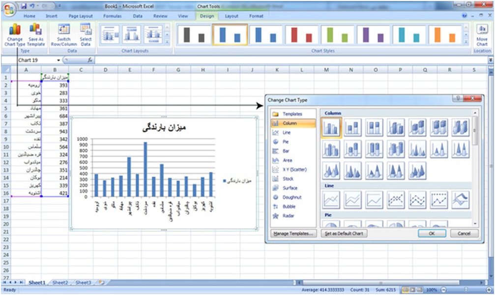گزینه Save as Templates نمودار درج شده را در پوشه ای به نام Templates ذخیره می کند تا در صورتی که دفعات بعدی مجددا به این نمودار احتیاج پیدا کردید، از آن استفاده کنید.