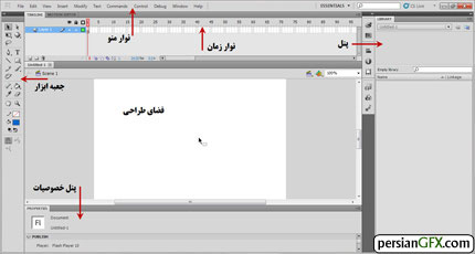 آشنایی با محیط و قسمت های مختلف فلش