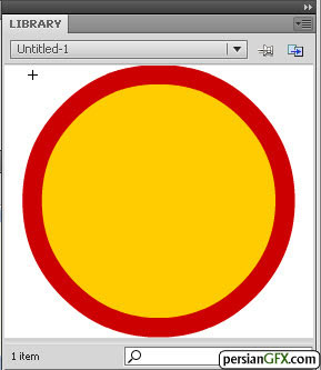 پنل ها در فلش دارای امکاناتي براي ويرايش اشياي ايجاد شده مي باشند. براي مثال، پنل Properties، ويژگي ها و امكانات ابزار انتخاب شده را به منظور ويرايش اشكال ايجاد شده در اختيار كاربر قرار مي دهد. يكي ديگر از پنل هايي كه كاربرد بسيار زيادي در فلش دارد، پنل Library‌ يا كتابخانه است. اشياء و اشكالي كه در فلش تبديل به نماد يا Symbol مي شوند، درون اين پنل نگهداري مي شود. همچنين هر فايلي كه قصد داريم در پروژه فلش از آن استفاده كنيم، مي توانيم ابتدا وارد اين پنل نموده و سپس از آن استفاده نماييم. براي مثال، اگر قصد داريم يك فايل PSD فتوشاپ را وارد محیط فلش كنيم، ابتدا بايد آن را وارد پنل كتابخانه كرده و سپس با باز كردن فايل PSD‌ و مشاهده لايه هاي آن، فايل را در پروژه استفاده كنيم. در شكل زير پنل كتابخانه و نماد ايجاد شده در آن را مشاهده مي كنيد. در درس هاي آينده با نحوه استفاده از اين پنل آشنا خواهيد شد.