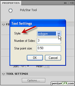 در پنجره ظاهر شده، در قسمت Style گزينه polygon را براي رسم چند ضلعي و يا star‌ را براي رسم ستاره انتخاب نماييد.