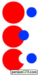 در شكل زير، دايره آبي روي دايره قرمز قرار گرفته و سپس با حركت دادن دايره آبي، قسمت پوشيده شده دايره قرمز رنگ توسط دايره آبي، برش داده مي شود.