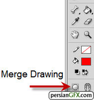 براي رسم شكل با اين روش، ابتدا ابزار مورد نظر را انتخاب كرده و سپس حالت Merge Drawing (حالت تركيبي) را در جعبه ابزار انتخاب كنيد. زماني كه اين دكمه در حالت انتخاب نباشد، حالت رسم شكل در حالت Merge Drawing‌ است. سپس مانند تصوير بالا، دو شكل رسم كرده و پس از آن كه يكي از دو شكل را روي ديگر قرار مي دهيد، يكي از شكل ها (شكل بالايي يا شكل زيرين) را با ماوس گرفته و از شكل ديگر جدا كنيد.