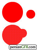 بايد توجه داشته باشيد كه عمل برش فقط زماني اعمال مي شود كه رنگ دو شكل با هم متفاوت باشد. در غير اين صورت زماني كه رنگ دو شكل دقيقاً مانند يكديگر است، دو شكل با هم تركيب شده و شكل ديگري را تشكيل مي دهند. در شكل زير، در نتيجه روي هم قرار دادن دو دايره كوچك و بزرگ، يك شكل واحد و تركيبي بوجود آمده است.
