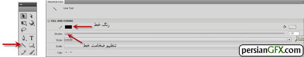 رسم خط با ابزار Line: ابزار Line‌ را در جعبه ابزار انتخاب كنيد. به منوي Properties