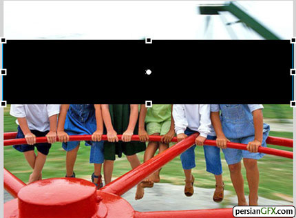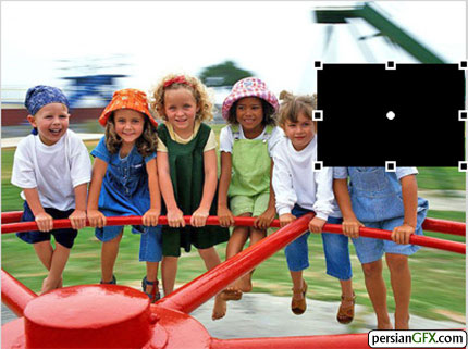 لایه ماسک تصویر اول، اشکال دایره یا چهارضلعی را اضافه کنید. سپس دستور Mask را