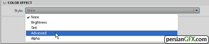 کلیک کنید. سپس از پنل خصوصیات، روی زبانه Color Effect کلیک کرده و گزینه Advanced