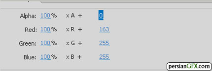 Blue را روی 255 تنظیم کنید.