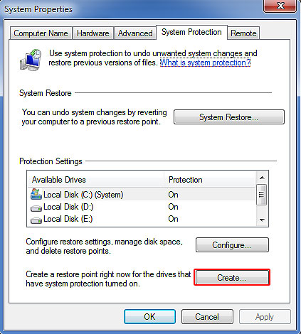 3.براي اين كه اين Restore Point ، درايو مورد نظرتان را نيز در بر بگيرد مطمئن شويد System Protection براي آن درايو فعال است