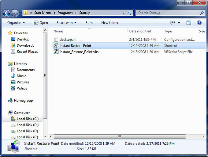 اگر مي خواهيد كه ويندوز در هر بار بالا آمدن به طور خودكار يك Restore point بسازد ابتدا اين دوفايل Restore point Shortcut و Instant Restore Point راازاينجا دانلود كرده ، آنها را از حالت فشرده خارج كنيد و بر روي دسكتاپ كپي كنيد .بر روي هر دو گزينه Restore point Shortcut و Instant Restore Point كليك راست كرده گزينه Cut را انتخاب كنيد و مراحل زير را پشت سرهم دنبال كنيد.