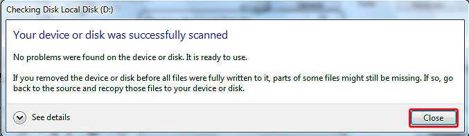 5. در پايان بررسي نتايج را مشابه تصوير زير خواهيد ديد بر روي Close كليك كنيد.