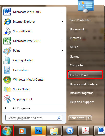 1.بر روي منوي Start كليك كرده و Control Panel را باز كنيد .