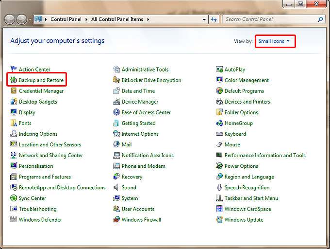 2. روي پيوند Backup and Restore كليك كنيد .