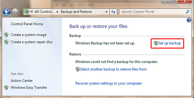3.روي دكمه Set up Backup كليك كنيد.