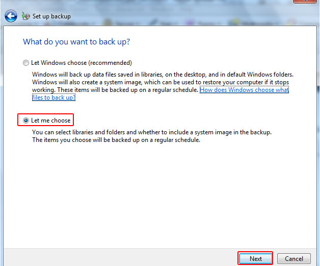 گزينه Let me choose را انتخاب كرده بر روي Next كليك كنيد .
