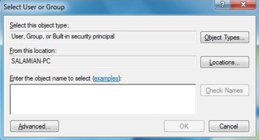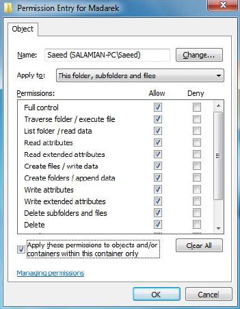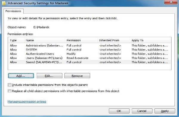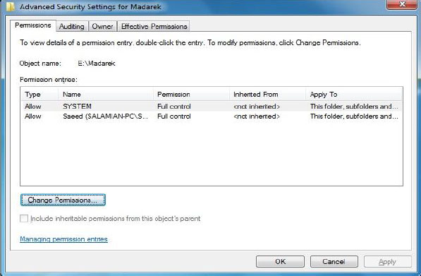 پنجره Permissions or Entry for ظاهر میشود در آن،