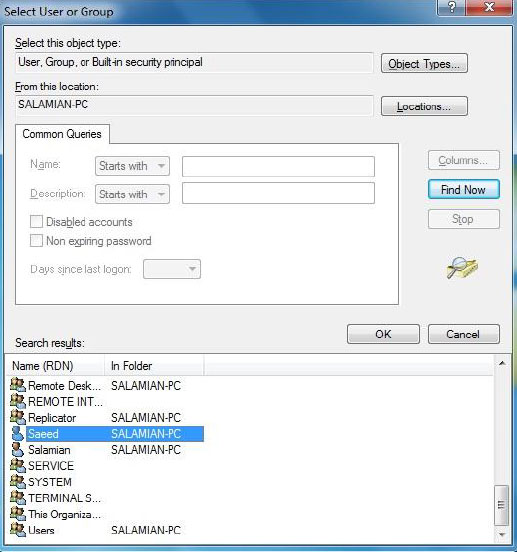 Search Results در پایین پنجره به دنبال نام کاربریتان بگردید و روی آن