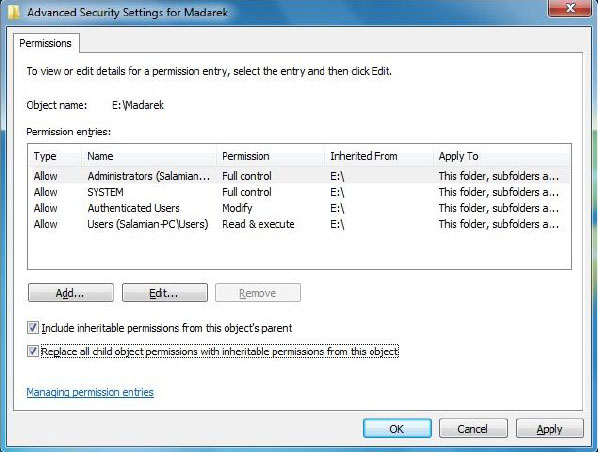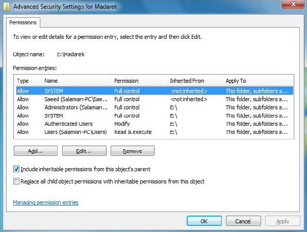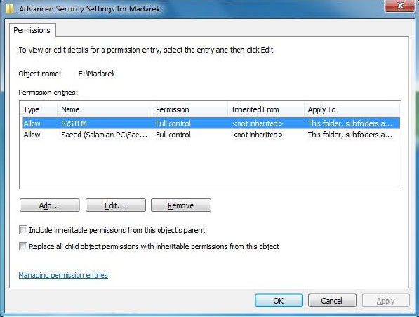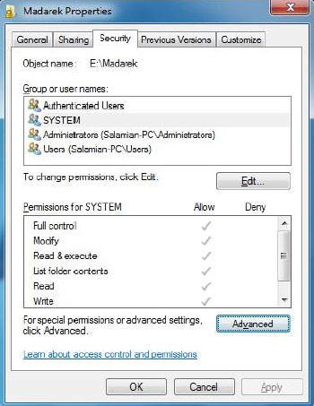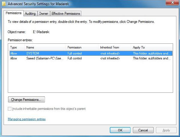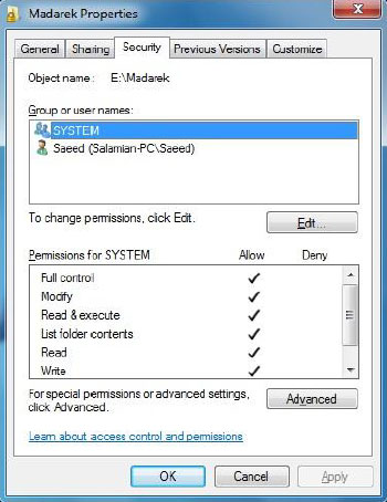 14. تمام! هم اکنون مجوزهای دسترسی به این پوشه به وضعیت سابق بازگشته اند.