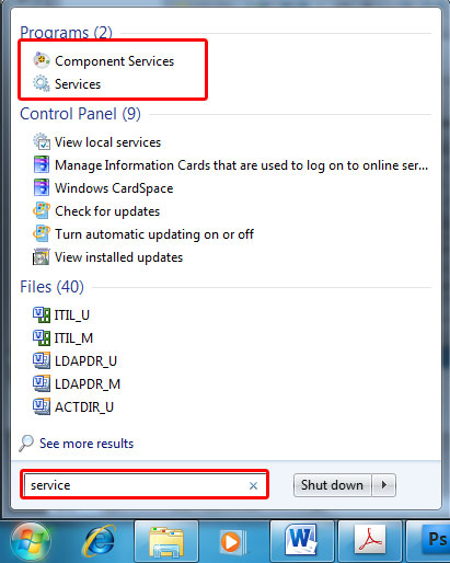 1.منوي Start را باز كنيد و در كادر جستجوي آن عبارت Service را تايپ كرده و Enter كنيد .