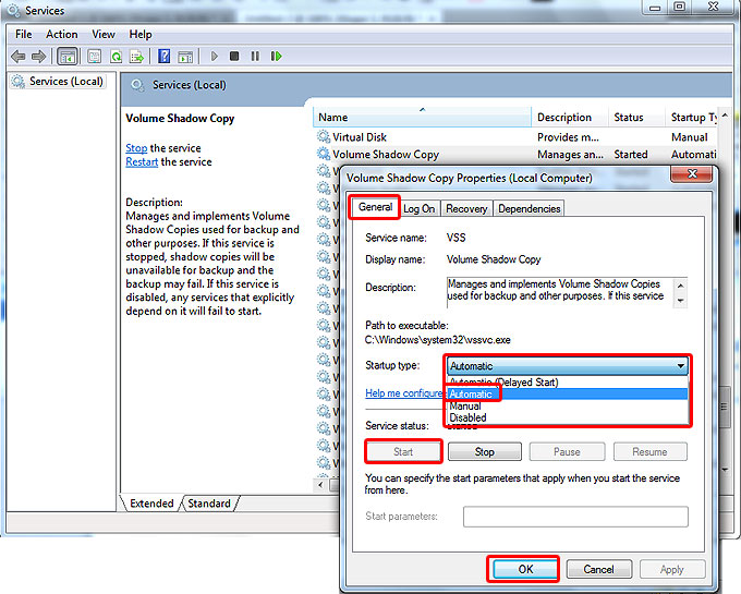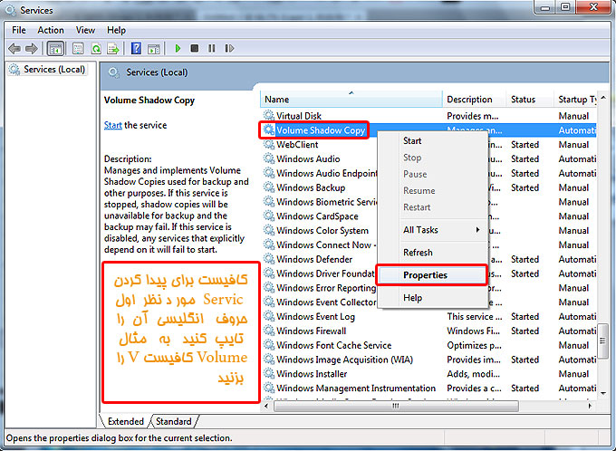 2.سرويس Volume Shadow Copy روي Automatic تنظيم شده باشد .