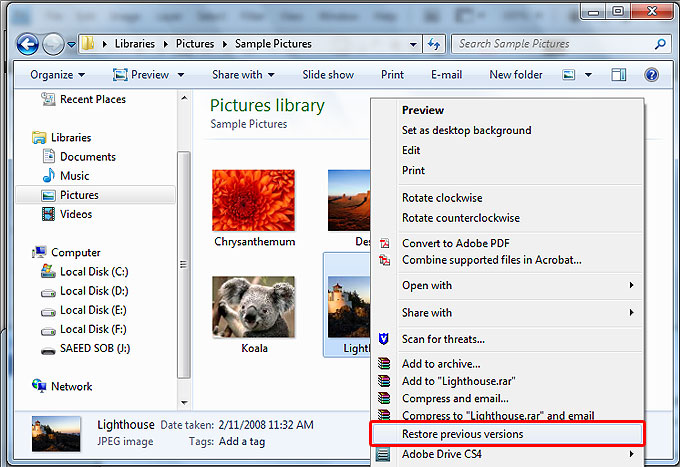 در اين آموزش به شما نشان مي دهيم كه چطور از ويژگي Previous versions براي بازيابي فايل ها و پوشه هايي كه در ويندوز 7 تصادفا تغيير كرده ، پاك شده و يا آسيب ديده اند ، استفاده كنيد وابسته به نوع فايل يا پوشه ، مي توانيد Previous versions مورد نظرتان را باز كنيد ، در يك جاي ديگر ذخيره كنيد و يا بازيابي كنيد .