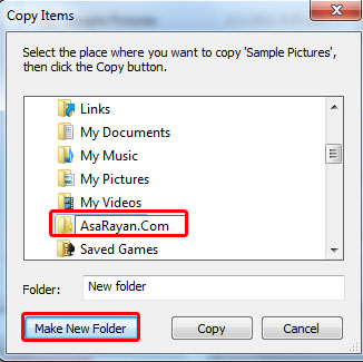 2.پوشه را انتخاب كرده يا با كليك روي Make a New Folder يك پوشه جديد ايجاد كنيد و سپس روي Copy كليك كنيد تا يك كپي از ورژن انتخاب شده در آن ذخيره شود .