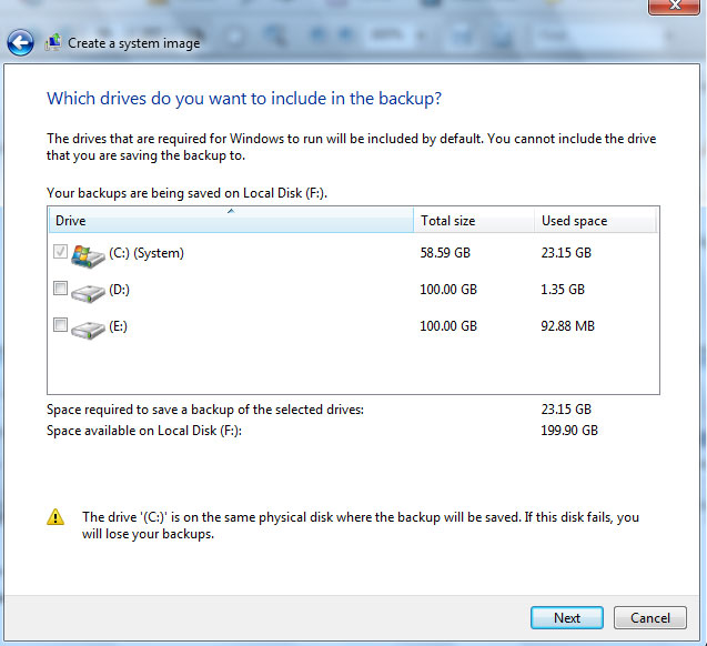 1. توجه كنيد كه ويندوز 7 تنها مي تواند درايوهايي كه داراي فايل سيستم NTFS هستند را در System Image بگنجاند .