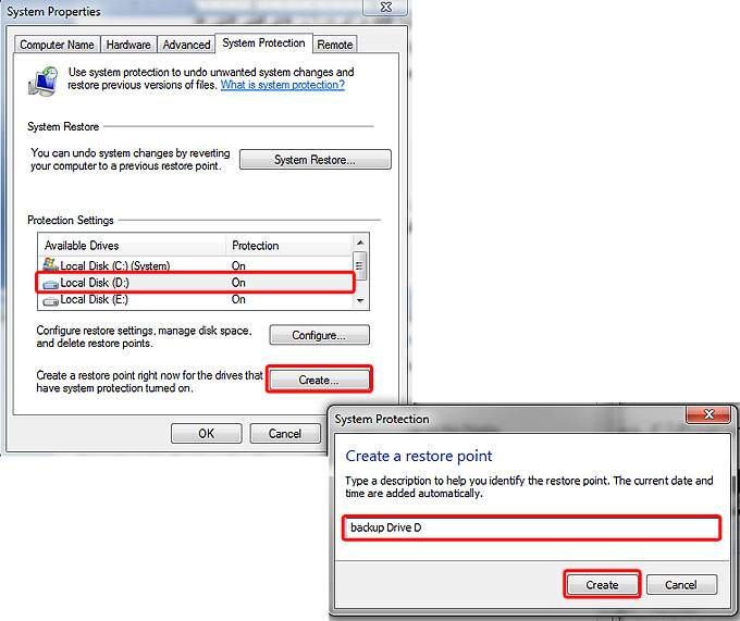 بعد از فعال کردن System Protection برای درایو های مورد نظرحالا نوبت به ایجاد یک Restore Point می کنیم