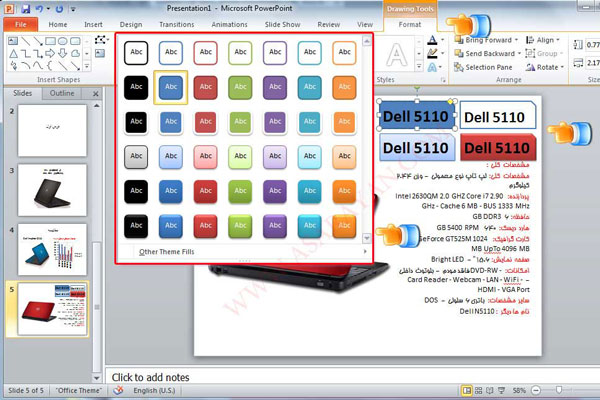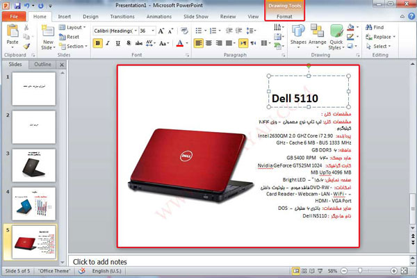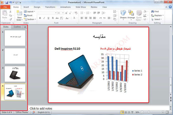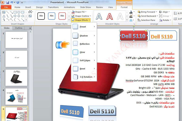 مجموعه اسلايدهايي که متن را با Clipart ، عکس، صدا، تصوير ، و حتي جلوه هاي ويژه