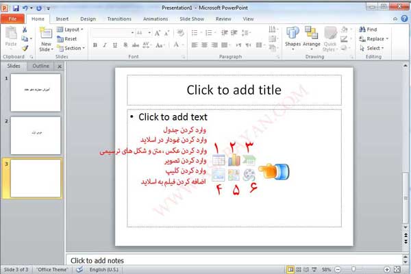 عکس می توانید وارد اسلاید خودتان کنید اگر قصد وارد کردن چند موقعیت در یک اسلاید