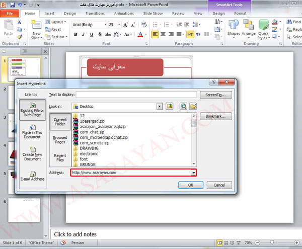 برای نمایش اسلاید ساخته شده کلید F5 را از روی کیبرد بزنید .لینک ساخته شده را تست کنید .