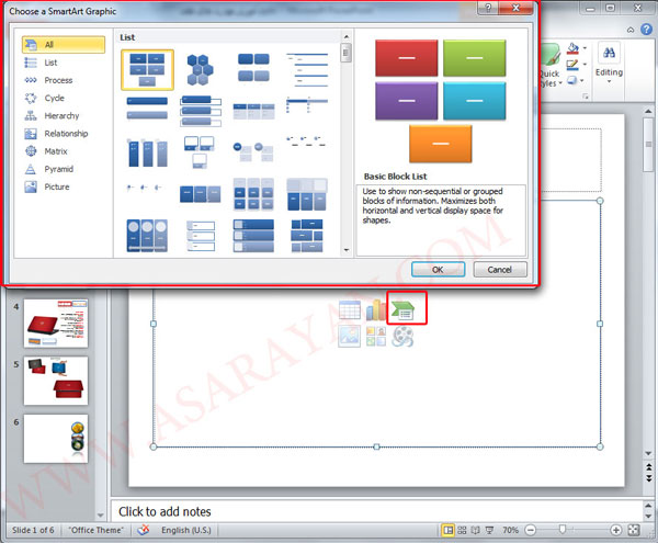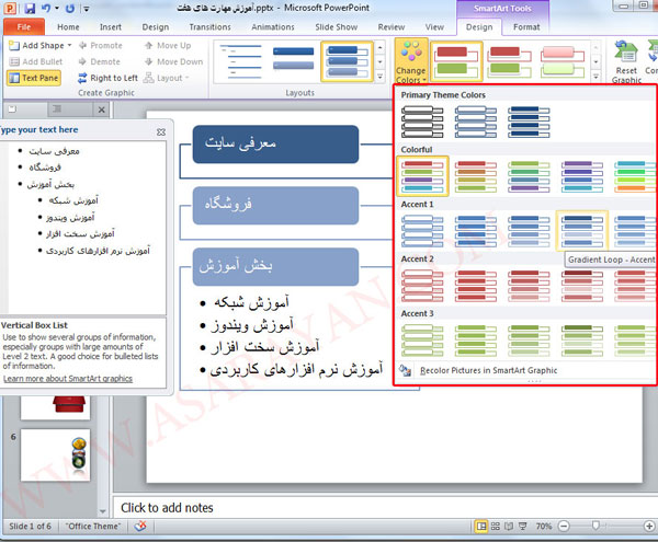 6. در قسمت Smart Art Style می توانید نوع نمایش باکس کشیده شده را تغییر دهید .