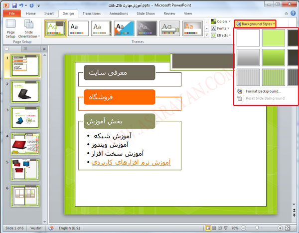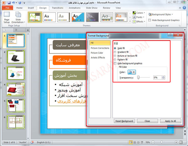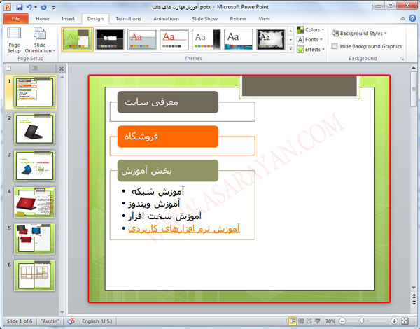 برای شما به طور کامل توضیح دادم.در این مرحله می خواهم تغییر ظاهری اسلایدها و