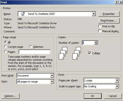 که می توانید در آن مشخص کنید که ازچه چیزی پرینت گرفته شود.