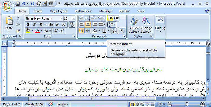 می کنید لازم است تا تغییراتی را به منظور تنظیم ساختار سند و خوانا تر کردن آن روی