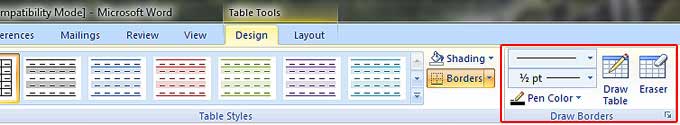 3-Draw Borders :این گزینه شامل Line Style برای اندازه خطوط ،Weight Line برای نوع خطوط ،Pen Color برای رنگ خطوط میباشد.