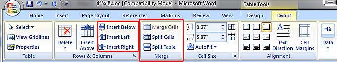 2 – ابزارCells  Mergeکه برای اتصال چندین سلول یا Split Cell که برای شکستن یک سلول به چندین قسمت مورد استفاده قرار می گیرد.
