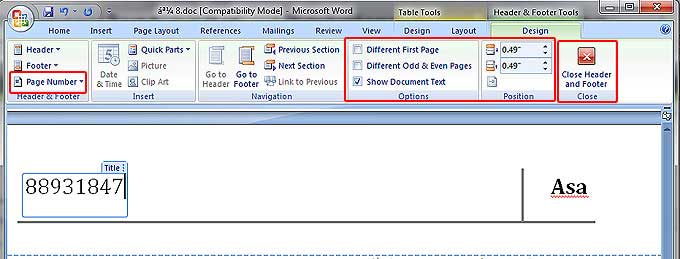 پس از انتخاب و تنظیم عنوان و پاورقی سند خود می توانید با زدن دکمه Close Header & Footer به صفحه اصلی سند خود بازگردید.