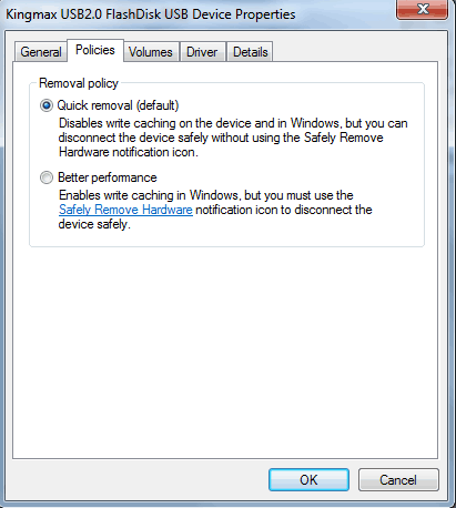 در صورتیکه بخواهید فلش مموری را بدون Eject کردن از پورت USB خارج کنید ، کافیست گزینه Quick Removal را انتخاب کرده و بر روی کلید OK کلیک کنید . با انتخاب گزینه دوم هم باید قبل از کشیدن فلش مموری از گزینه Safely Remove Hardware استفاده کنیم .به همین راحتی می شود از سوختن فلش مموری جلوگیری کرد. امیدوارم آموزش خوبی بوده باشد
