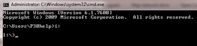 در پنجره Command باز شده ابتدا آدرس را به سمت درایو فلش دیسک هدایت می کنیم برای مثال اگر نام درایو مموری دیسک من I باشد با زدن عبارت زیر پنجره ی داس را به آدرس مورد نظر هدایت می کنیم: