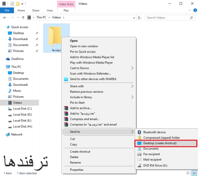برای اینکار می توانید بر روی پوشه مورد نظر خودتون راست کلیک.کرده وگزینه Send to>Desktop را انتخاب کنید.