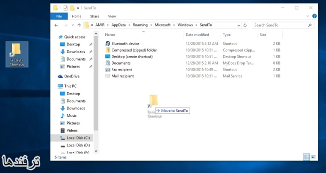 اکنون اگر منوی Send to را مشاهده نمایید، خواهید دید که پوشه مورد نظر شما به منو اضافه شده است.
