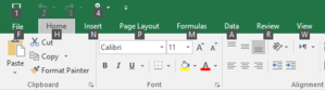 دسترسی به ابزارها با استفاده از کیبورد : اکسل‌های نسخه ۲۰۱۳ تا ۲۰۱۶ همانند افزونه vim-inspired در مرورگر‌های کروم و فایرفایکس قابلیت Key Tips را در اختیار کاربران خود قرار می‌دهند. استفاده از آن به این شکل است: هنگامی که کلید Alt را می‌فشارید، برای هر ابزاری که در منوی بالای صفحه قرار دارد یک حرف مشخص خواهد شد که با فشردن آن حرف، آن ابزار عمل خواهد کرد.